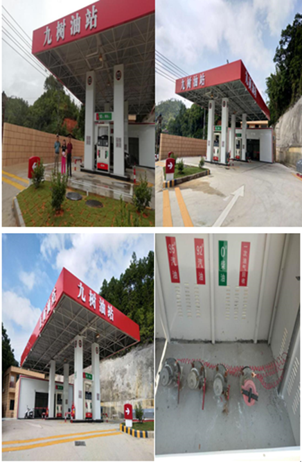 該加油站為新建加油站,新建加油站為三級(jí)加油站,工程內(nèi)容包括:加油罩棚一座(罩棚下設(shè)置2臺(tái)四槍加油機(jī))、油罐區(qū)設(shè)置在加油亭下,有埋地油罐3個(gè)(其中汽油罐30m³×2個(gè),柴油罐30m³×1個(gè),折合汽油總?cè)萘繛?5m³)、工藝管線及配套加油、卸油油氣回收系統(tǒng)、站房、輔助用房等設(shè)施。